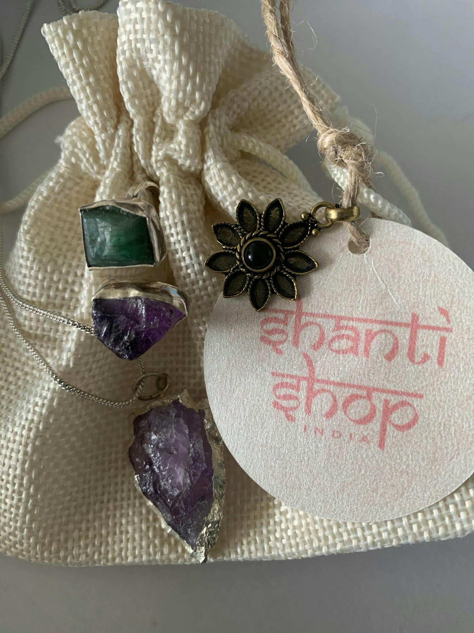 Our Green Emerald and Amethyst Stone Crystal Ring is an exquisite embodiment of nature's treasures and artisan craftsmanship.