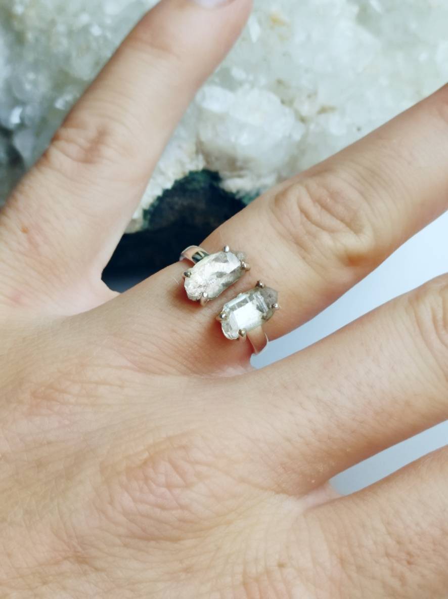 - Raw Herkimer Diamond ring for energetic connection