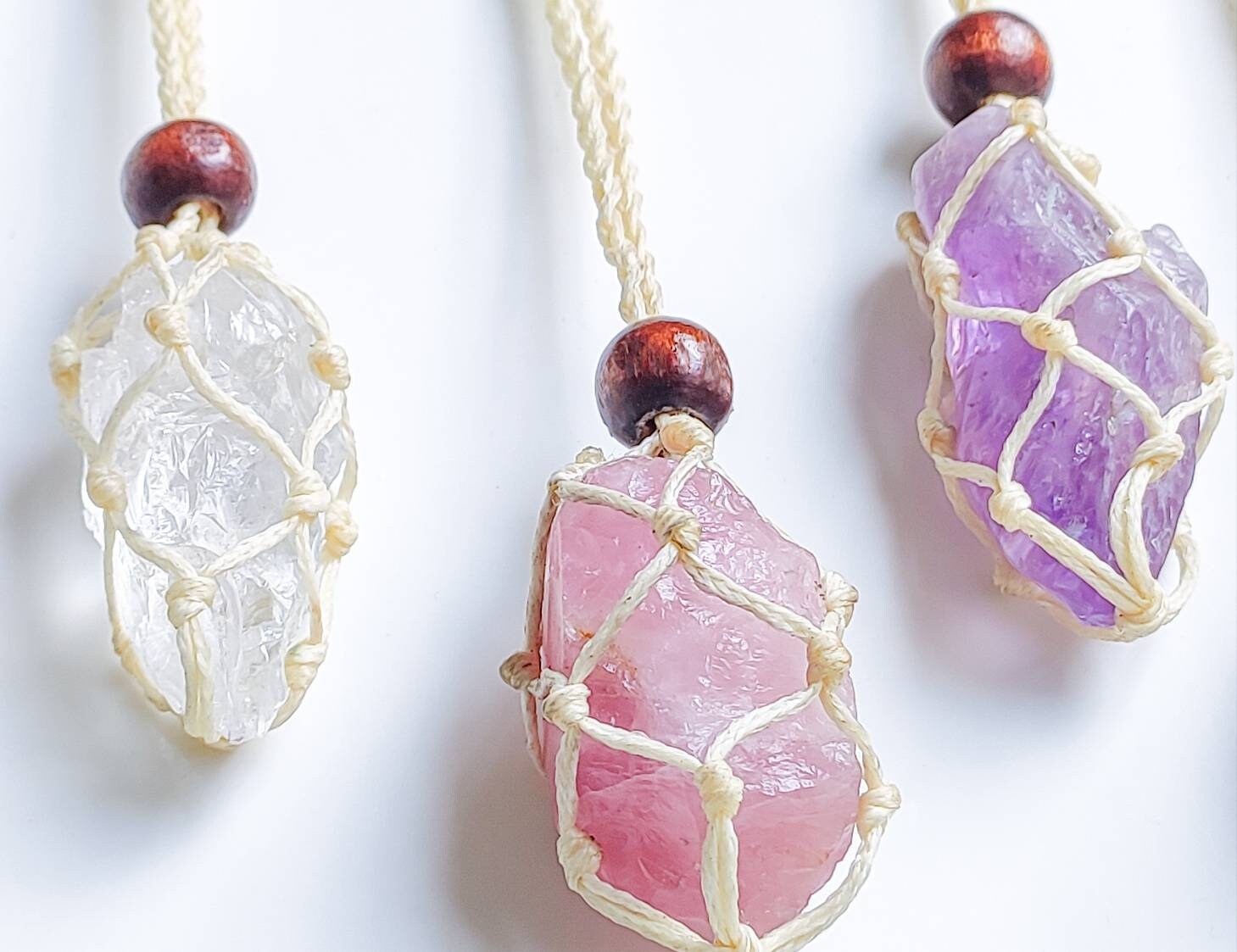 Crafted with eco-consciousness, this Crystal Pendant Necklace features a premium-quality hemp cord, a sustainable choice for the eco-conscious fashionista. The intricate macramé knots showcase artisanal skill and lend a rustic, organic texture to the design. Each knot is a testament to the meticulous craftsmanship that goes into creating this one-of-a-kind accessory.