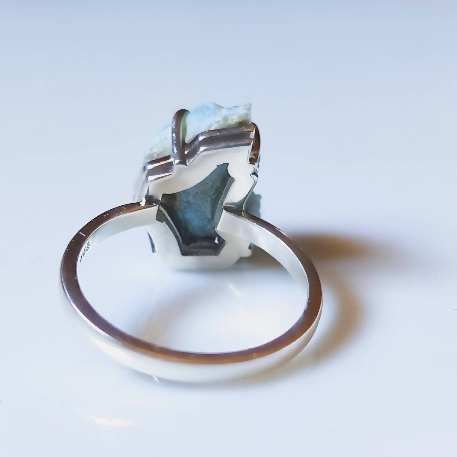 - The Raw Larimar Mineral Ring is versatile and adds sophistication to any outfit.